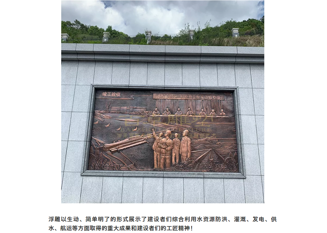 浮雕以生動、簡單明了的形式展示了建設者們綜合利用水資源防洪、灌溉、發電、供水、航運等方面取得的重大成果和建設者們的工匠精神!