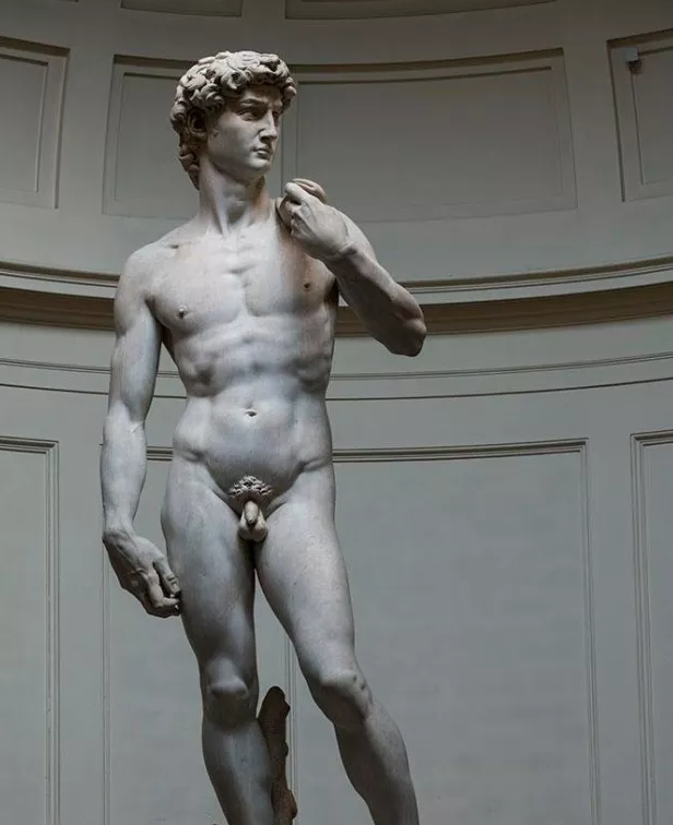 《大衛》大理石雕像創作于16世紀初,人像高3.96米,重5.46噸。《大衛》是米開朗基羅的代表作,它被視為西方美術史上最優秀的男性人體雕像之一。