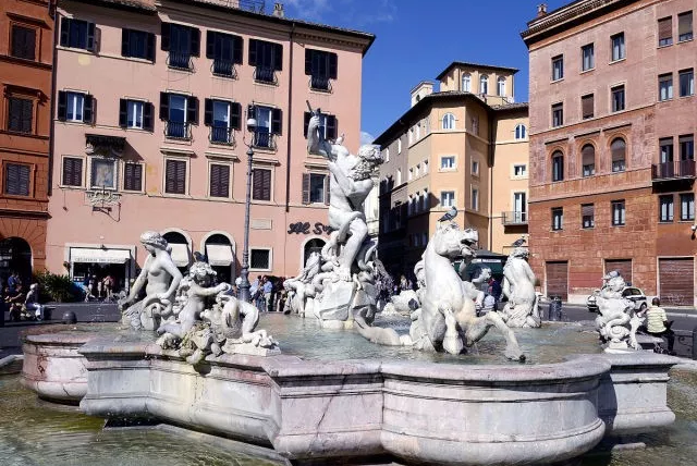 尼普頓是希臘神話中的波塞冬。雕像群有兩個主題,一是立在中央的海神尼普頓大戰章魚;二是噴泉四周的陪伴有丘比特的海中仙女涅瑞伊得斯和海象。